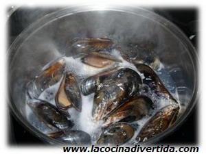 3.- Añadimos la sepia y subimos el fuego, dejamos que se rehogue unos 5 minutos y añadimos los mejillones troceados y el tomate bien picado (se puede utilizar tomate triturado)