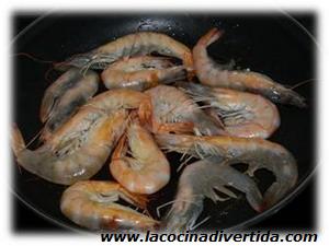 6.- Mientras se cuece el arroz ponemos en una sartén los langostinos y los marcamos un poco sin que se hagan del todo, ya que les añadiremos al arroz en el último momento y se terminarán de hacer