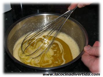 3.- A continuación vamos añadiendo poco a poco el aceite a la mezcla anterior