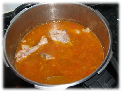 4.- Finalmente agregamos las alubias escurridas y cubrimos con agua la cazuela; si utilizamos olla rápida habrá que añadir menos agua. Dejamos cocer hasta que esté blanda la legumbre (en cazuela 1 hora y media aproximadamente).