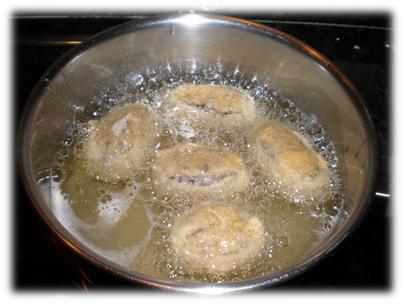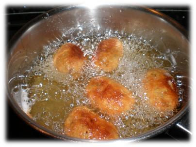 - Freímos con abundante aceite (en esta receta se ha usado aceite de girasol), hasta que estén doradas por ambos lados. Una vez hechas retiramos a un plato con un papel de cocina para que absorba el exceso de aceite)