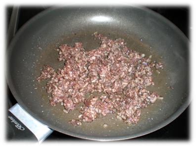 - Desmenuzamos la morcilla, sin piel, y freímos en una sartén antiadherente con un hilito de aceite de oliva (la morcilla suelta su propia grasa)