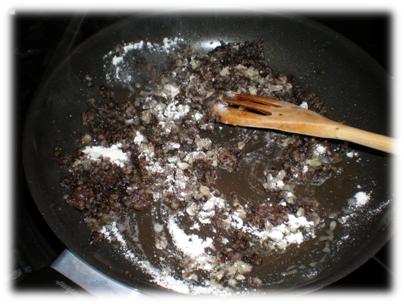 - Una vez hecha, añadimos dos cucharadas de harina y rehogamos hasta que la harina se disuelva bien (la harina cruda dejará mal sabor y se formarán grumos al hacer la besamel)