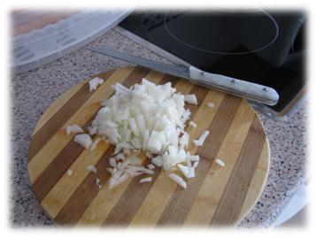 2. Pelar y picar la cebolla.