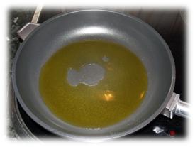 1. En una sartén antiadherente calentamos 5 ó 6 cucharadas de aceite de oliva.