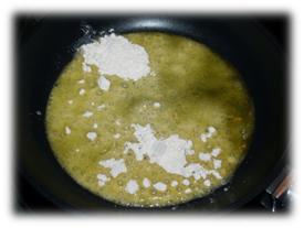 2. Cuando esté caliente, pero sin humear, añadimos la harina (aproximadamente el mismo peso que de aceite).