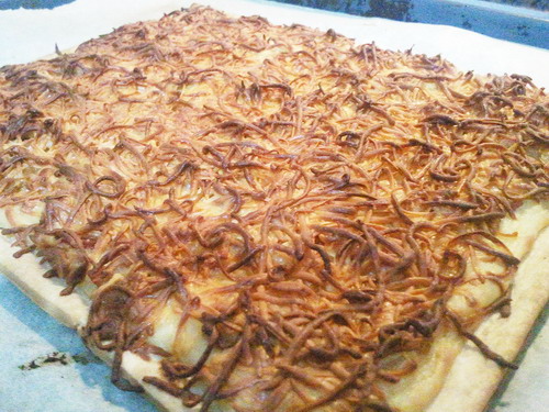 Así que pensé en una modesta contribución a este día tuitero, y la verdad me resultó muy fácil. ¿Qué pensaba llevar al trabajo para comer?, pues esa va a ser la receta de hoy, ya está. En este caso es una coca que hice ayer con intención de que sobrase y así tener también para comer hoy.