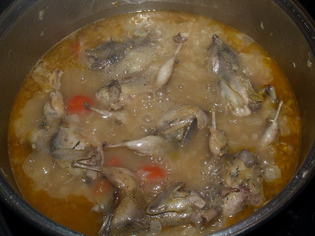 5. Añadimos agua y dejamos cocer 50 minutos o 1 hora hasta que la carne esté blanda (la pechuga es la parte más dura). La codorniz de criadero necesitará media hora aproximadamente.