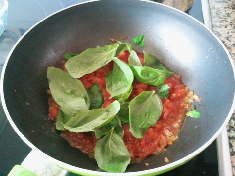 - Añadimos las hojas de albahaca y mantenemos un par de minutos más.