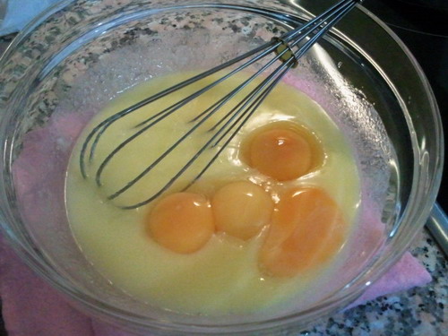 - Separamos las yemas de las claras y mezclamos las yemas (las claras las reservamos)
