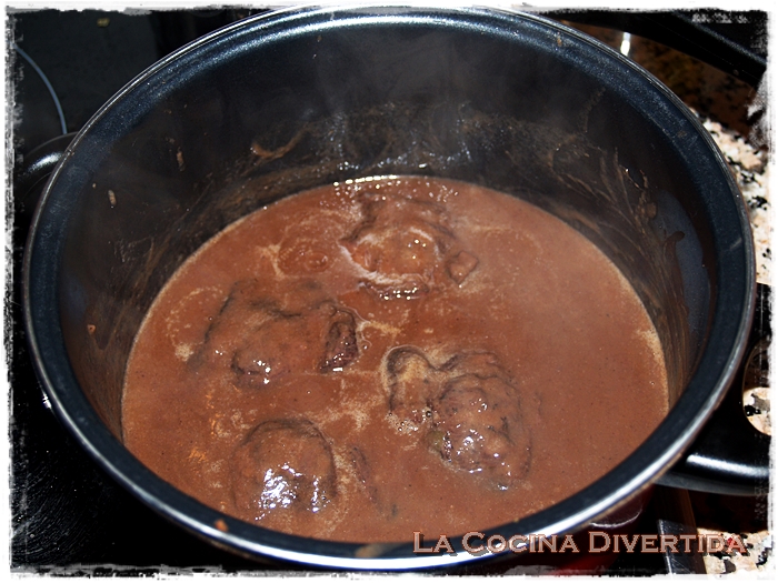 6. Una vez blanda la carne retiramos de nuevo y trituramos la salsa. Probamos por si es necesario rectificar de sal y dejamos cocinar hasta que adquiera la textura que deseemos y con cuidado volvemos a introducir las carrilleras a la salsa.