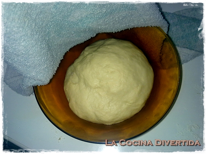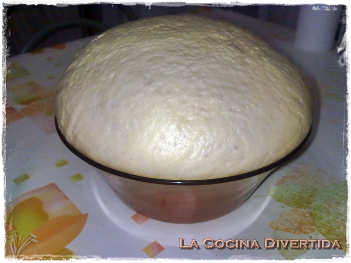 - Cuando haya quedado bien amasado, dejar la masa en un bol tapada con un trapo mojado de una y media a dos horas a temperatura ambiente, hasta que doble su tamaño (en la foto se nos salió del bol).