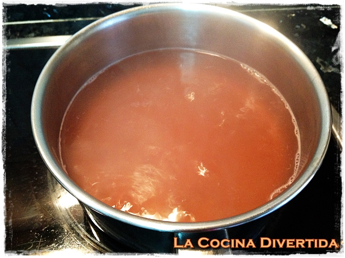 - Mientras habremos puesto el caldo de cocer el pulpo en un cazo a hervir, que añadiremos al arroz, en una proporción de 3 veces más caldo que arroz. Añadimos un pellizco de sal.