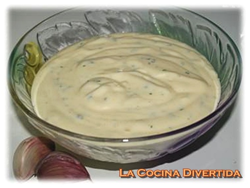 - Acompañamos a la mesa con un ali-oli, para quien quiera, que podemos hacer siguiendo las indicaciones de esta salsa mayonesa, hecha con la batidora de casa, a la que añadimos un diente de ajo, sin el tallo interno, y un poco de perejil picado.