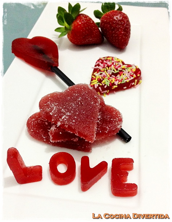 Claramente esta receta está pensada para el día de San Valentín, el día de los enamorados, pero qué queréis que os diga, una gominolas de fresas caseras gustan cualquier otro día.